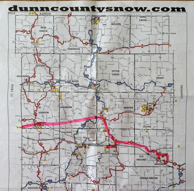 Providing the Snowmobile Trail system within Dunn County